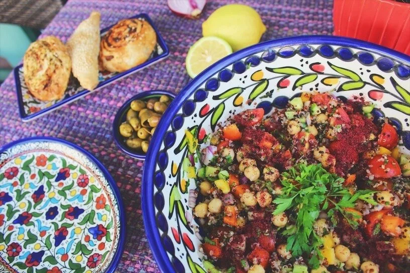 بنقطعها صغير. هيكا الفلسطينية بحبو يعملو كلشي: بسيط، واضح، وعلى قد حاله. وبحب أضيف الحمص حب على كلشي؛ ليش لا؟ وهلا لدفعة الطاقة: الكينوا!بنزينها بالزينة الأزكى: السماق.